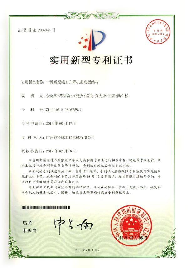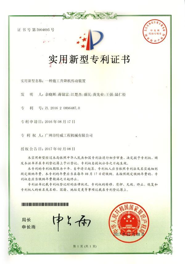 廣州市特威工程機(jī)械有限公司地處廣州市白云區(qū)神山鎮(zhèn),廣清高速神山出口附近,是一家施工升降機(jī)的專業(yè)生產(chǎn)廠家。公司成立于2011年,占地100000多平方米,注冊(cè)資金1060萬(wàn)元,現(xiàn)有員工300余人其中工程技術(shù)人員33人,高級(jí)技術(shù)人員52人。